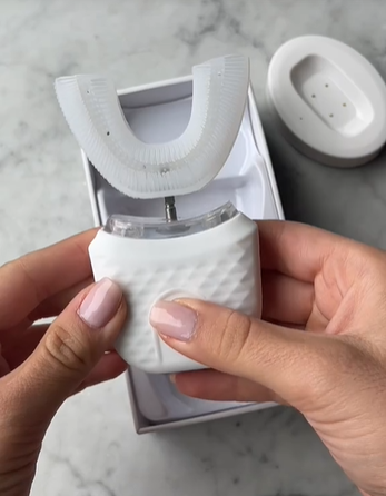 Com tecnologia LED e design em U, você elimina bactérias, previne mau hálito e clareia os dentes de forma suave e eficaz 🌿💡.